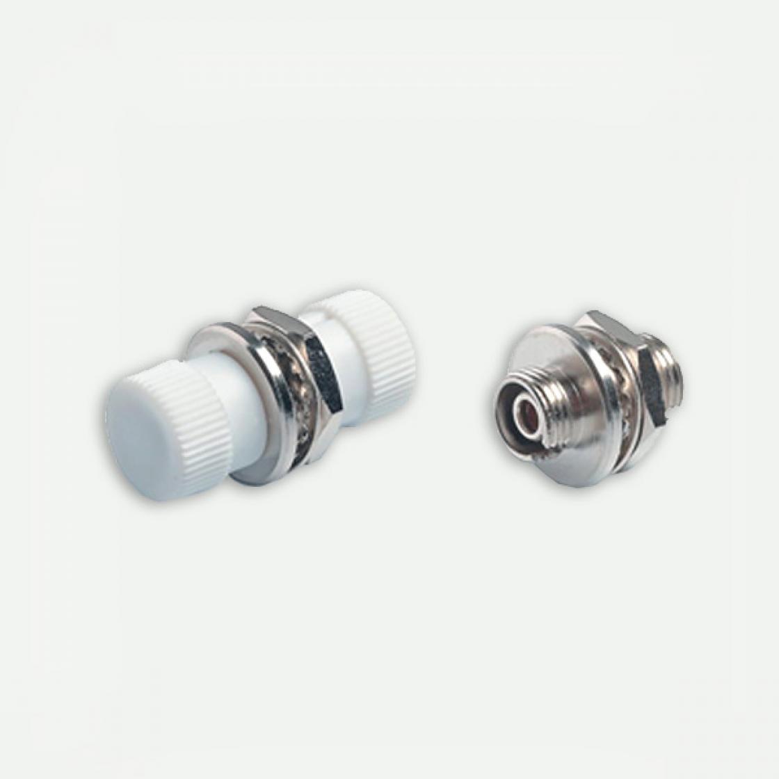 FC type D-типа. Корпус оптического адаптера выполнен из никелированной латуни. Крепление адаптера FC к патч-панели осуществляется с помощью резьбового соединения. Полимерные заглушки защищают оптический адаптер FC от попадания пыли.