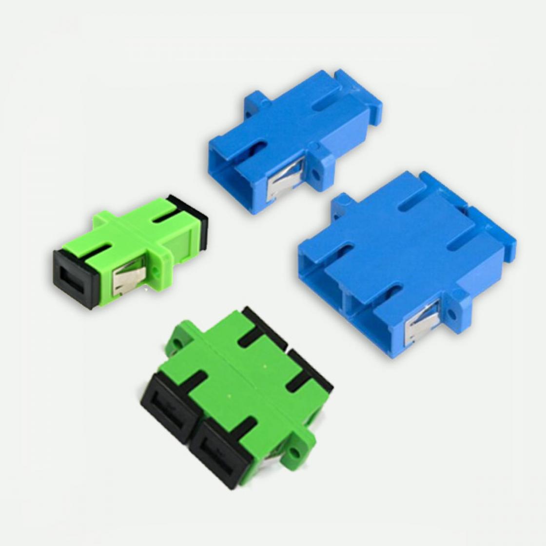 SC type (Simplex / Duplex). Данный оптический адаптер SC предназначен для соединения оптических шнуров с APC/UPC полировкой. Корпус оптического адаптера выполнен из пластика зеленого/синего цвета. Крепление адаптера SC к патч-панели осуществляется с помощью металлического стопора и, дополнительно, с помощью винтов.
