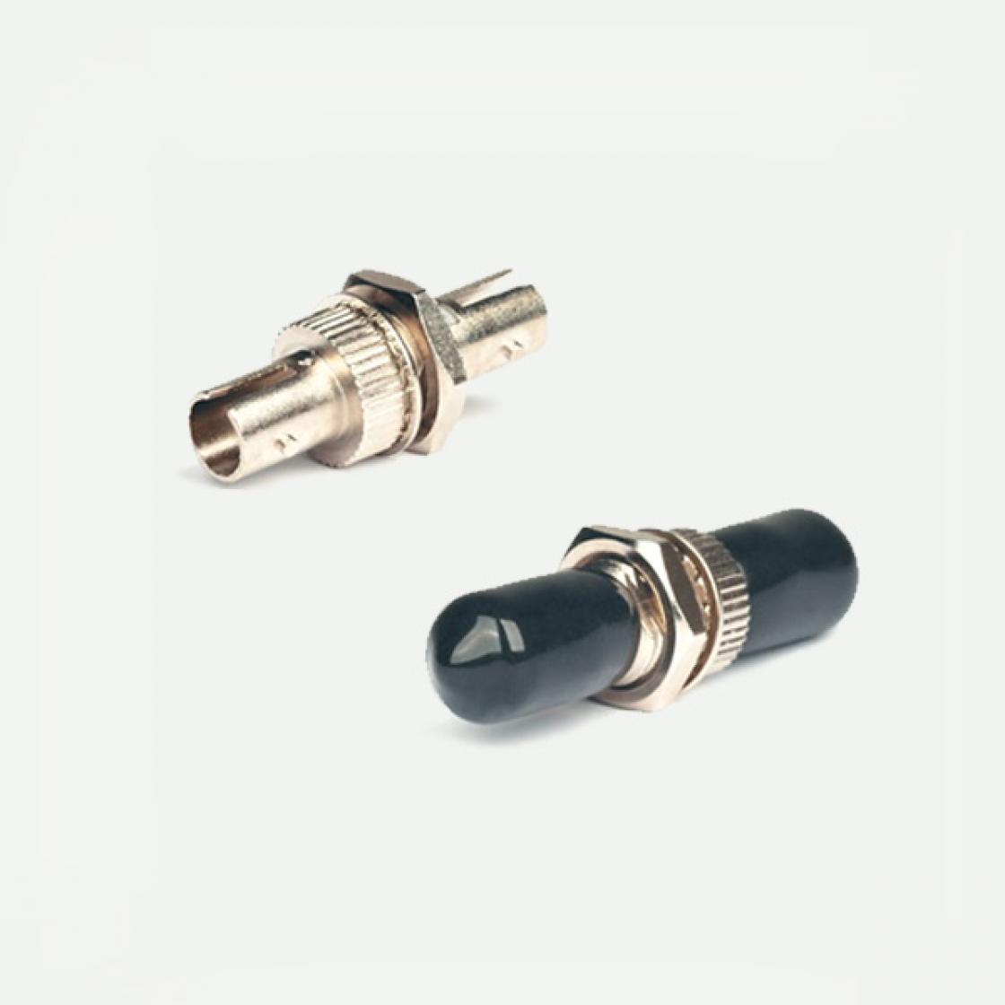 ST type. Корпус адаптера выполнен из никелированной латуни. Крепление адаптера к патч-панели осуществляется с помощью резьбового соединения. Полимерные заглушки защищают адаптер от попадания пыли.