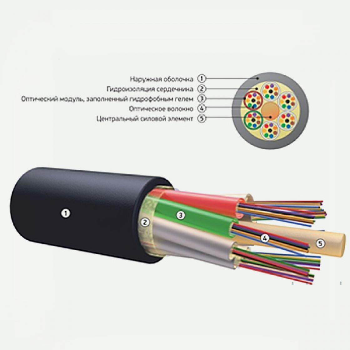 Наружная оболочка выполняется из композиции полиэтилена. При • прокладке кабеля внутри помещений оболочка может быть выполнена из композиций, не распространяющих горение, в том числе безгалогеновых, с низким дымовыделением.